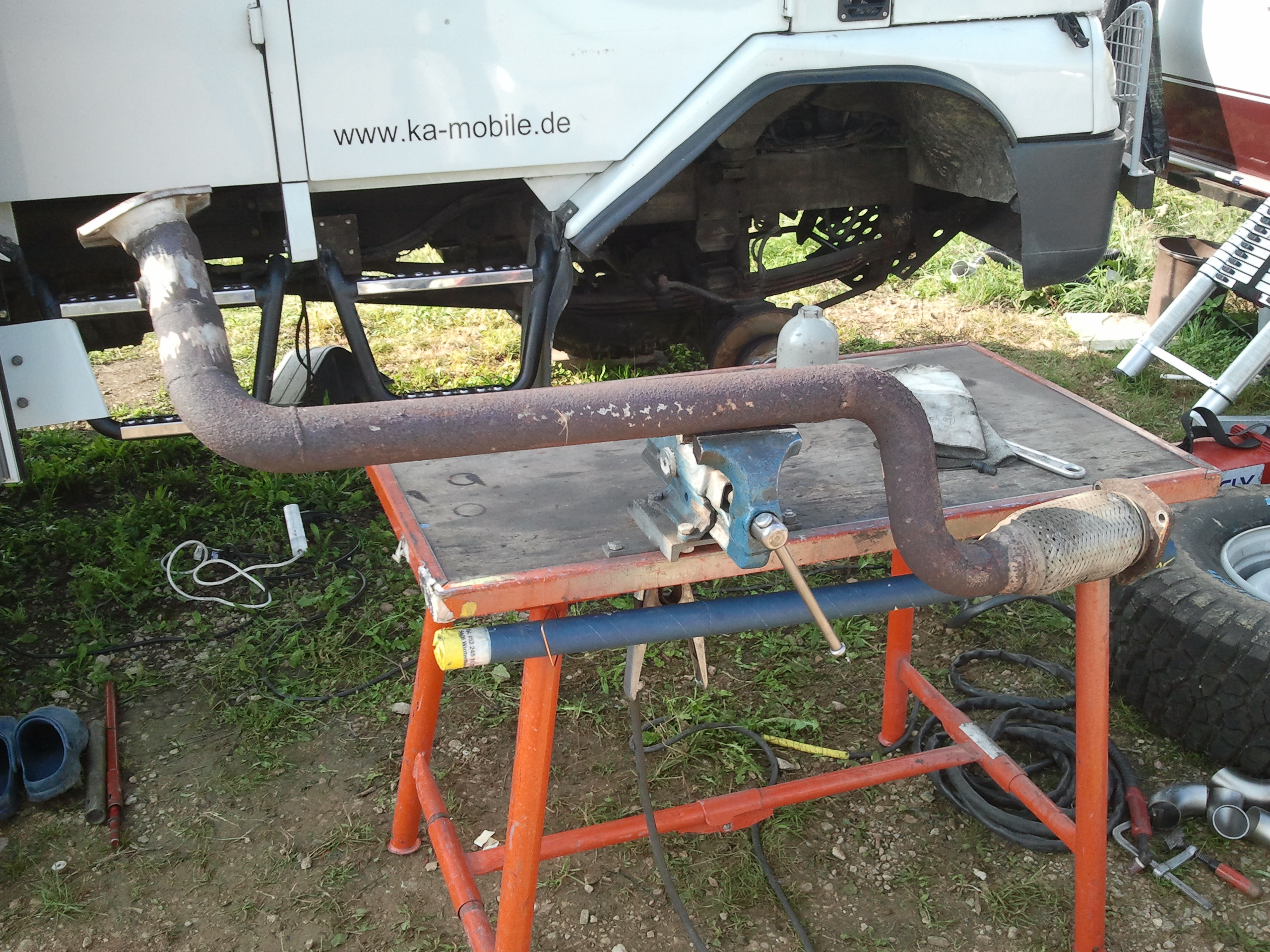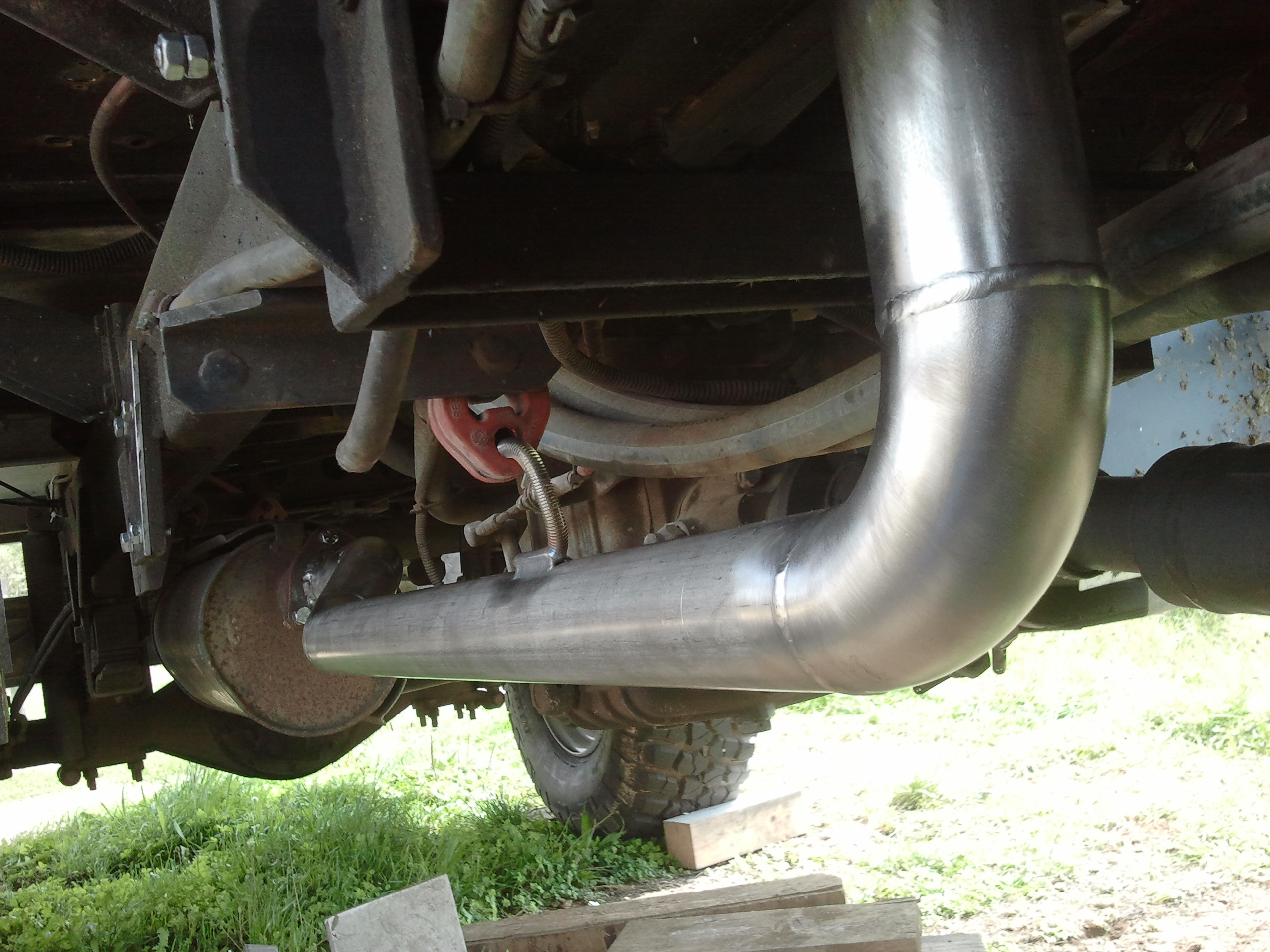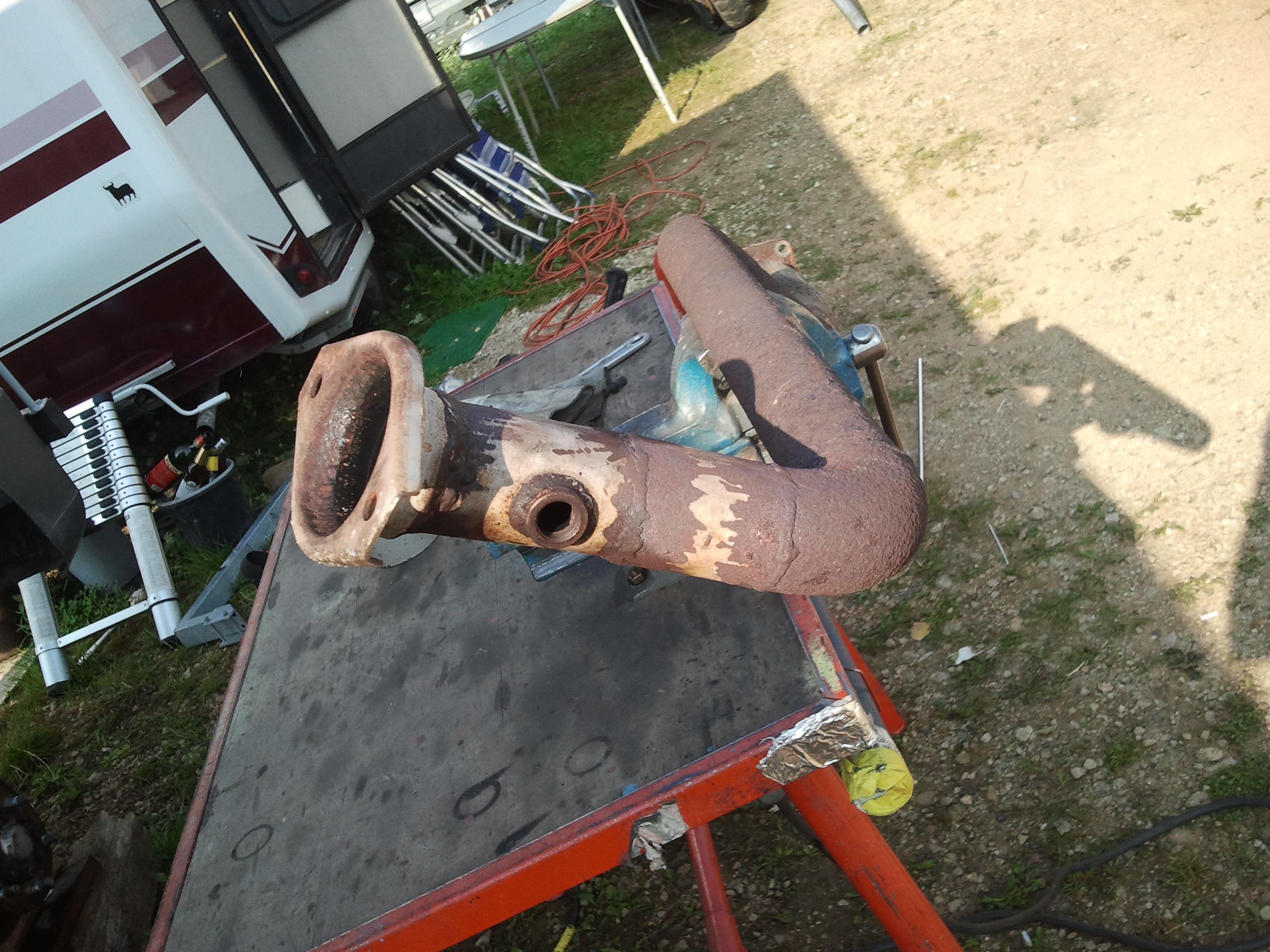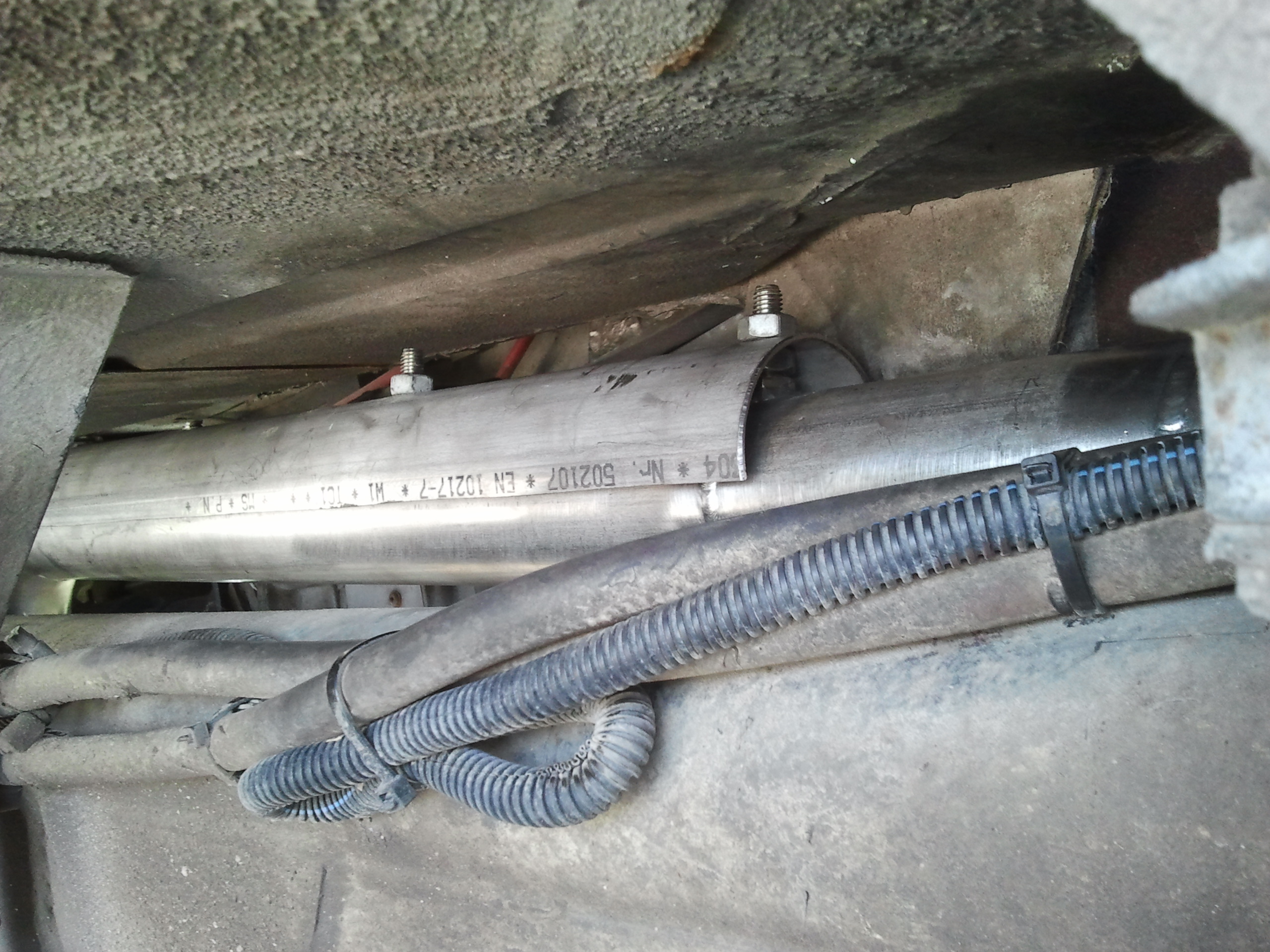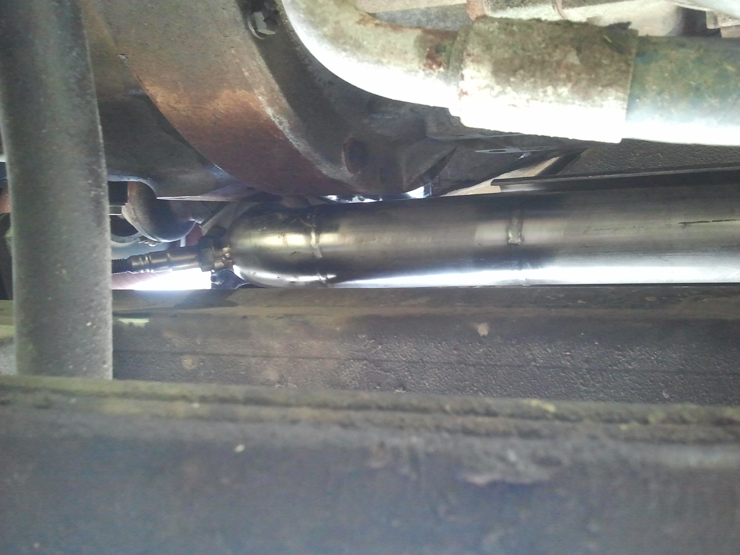 Pour la ligne, j'ai repris la bride d'origine qui va sur le turbo, normalement c'est un alliage qui ne rouille pas, de l'autre coté c'est aussi la bride d'origine qui elle est toute rouillée mais assez épaisse pour durer encore longtemps, tout c'est fait un peu dans l'urgence.