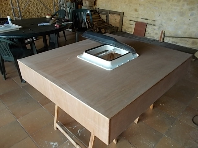 3/ construction de l'extension de toit: 130 cm x 115 cm x 20 cm de hauteur en ctp marine de 8mm et tasseaux de 27x27mm en sapin