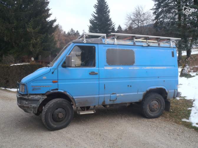Vends IVECO 4x4 turbo daily, declassé permis 3,5t, mécanique ok, pour bricoleur ou pro car carrosserie à revoir, trés bon franchissement, boite courte et longue, blocage de pont AR ET AV, moyeu AV débrayable, avec galerie, batterie neuve ...N'hésitez pas à me contacter pour plus de renseignements, Prix à débattre